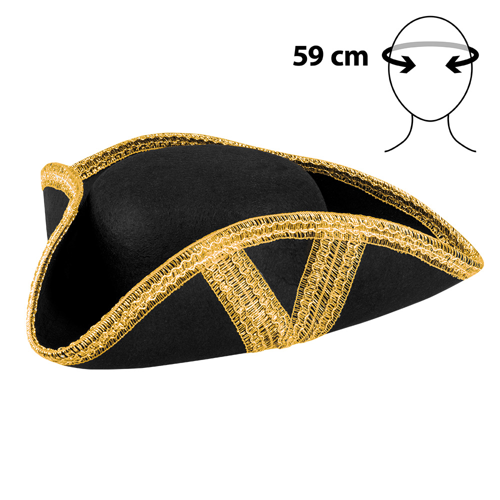 Deze royale piratenhoed met gouden details is het perfecte accessoire voor een stoere piraten look. Als een echte kapitein verover je de zeëen, maar dan wel in stijl!